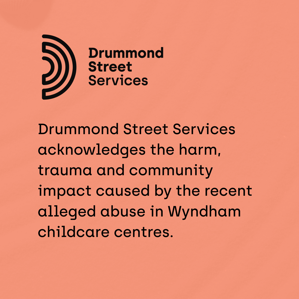 Drummond Street Services acknowledge the harm and trauma experienced by recent alleged assaults and abuse across Wyndham childcare centres. We also acknowledge the community trauma that these incidents can cause across so much of our community sectors, families, parents, carers, workers and children.